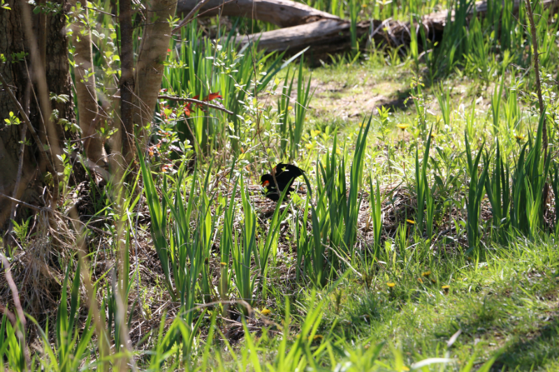 変わった鳥もいます。全身真っ黒なのに肩のところだけ赤い鳥。